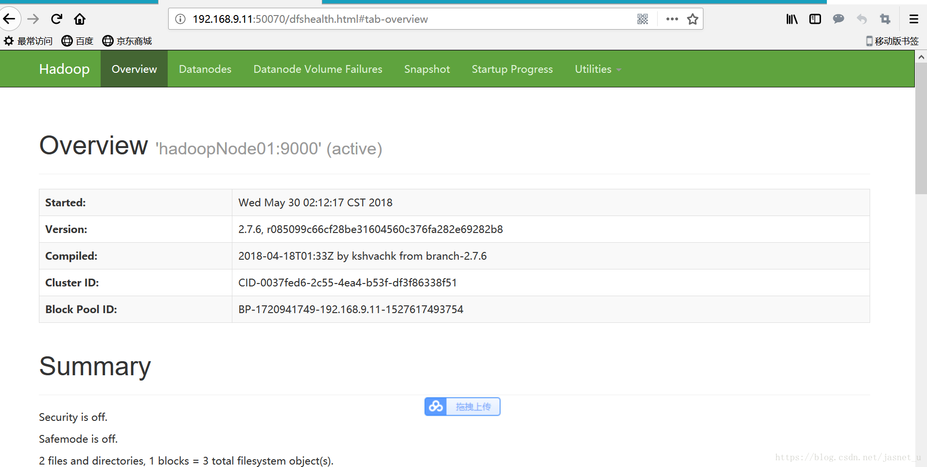 尝试访问 http://192.168.9.11:50070 查看hdfs集群 .