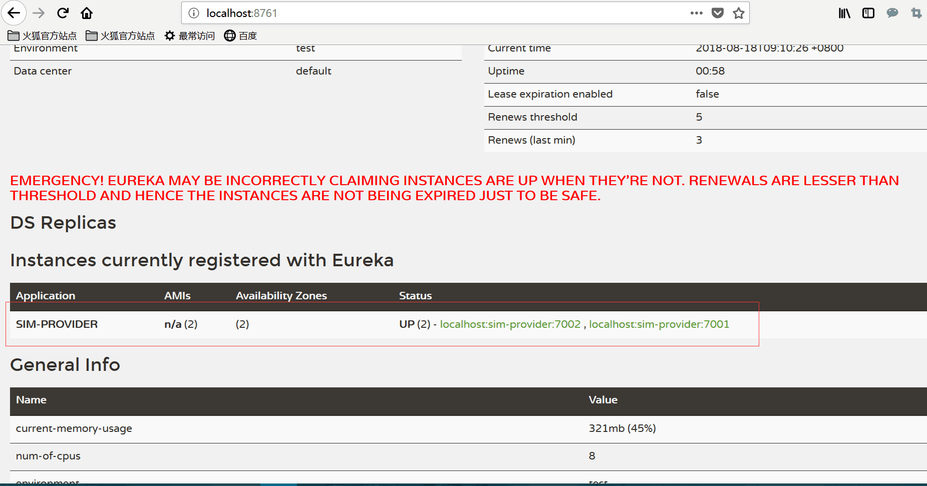 再次访问Eureka 服务器后台界面,发现 SIM-PROVIDER 有了两个服务实例