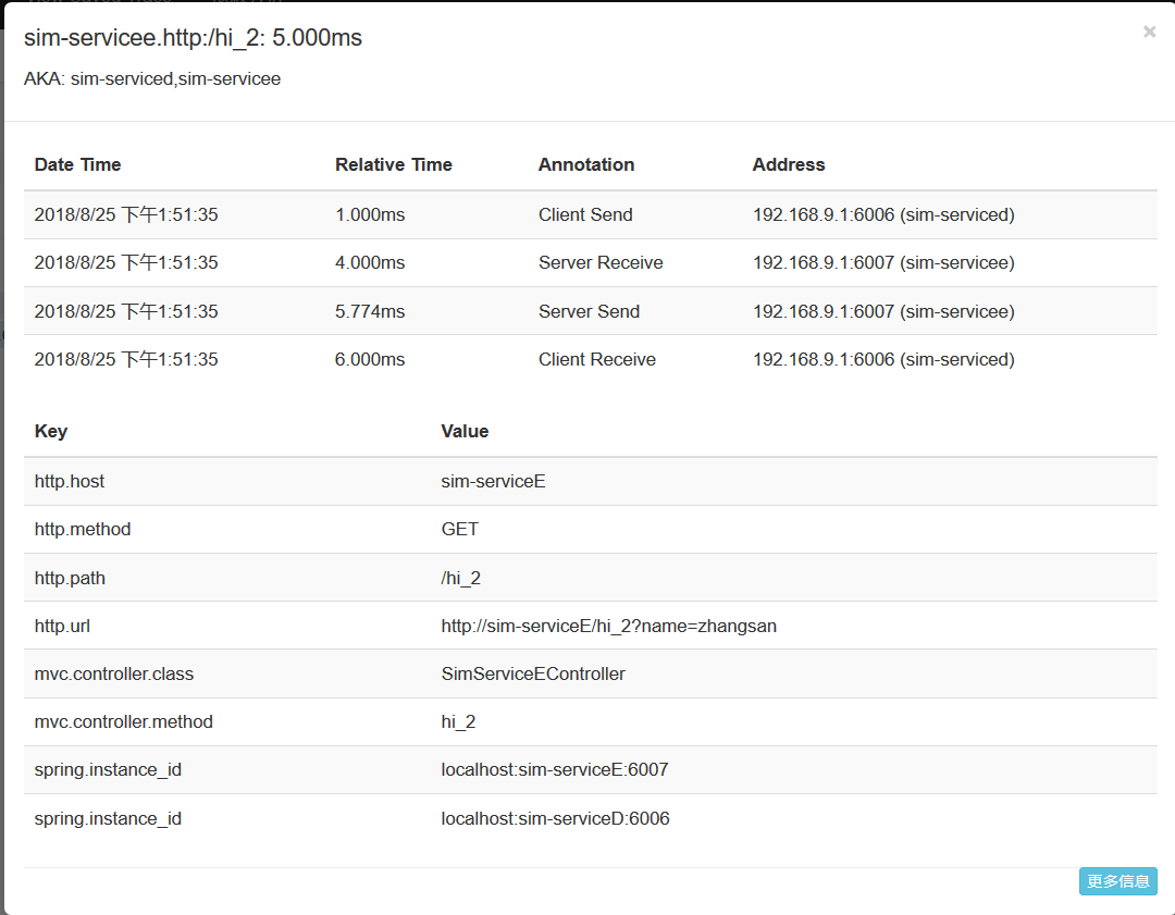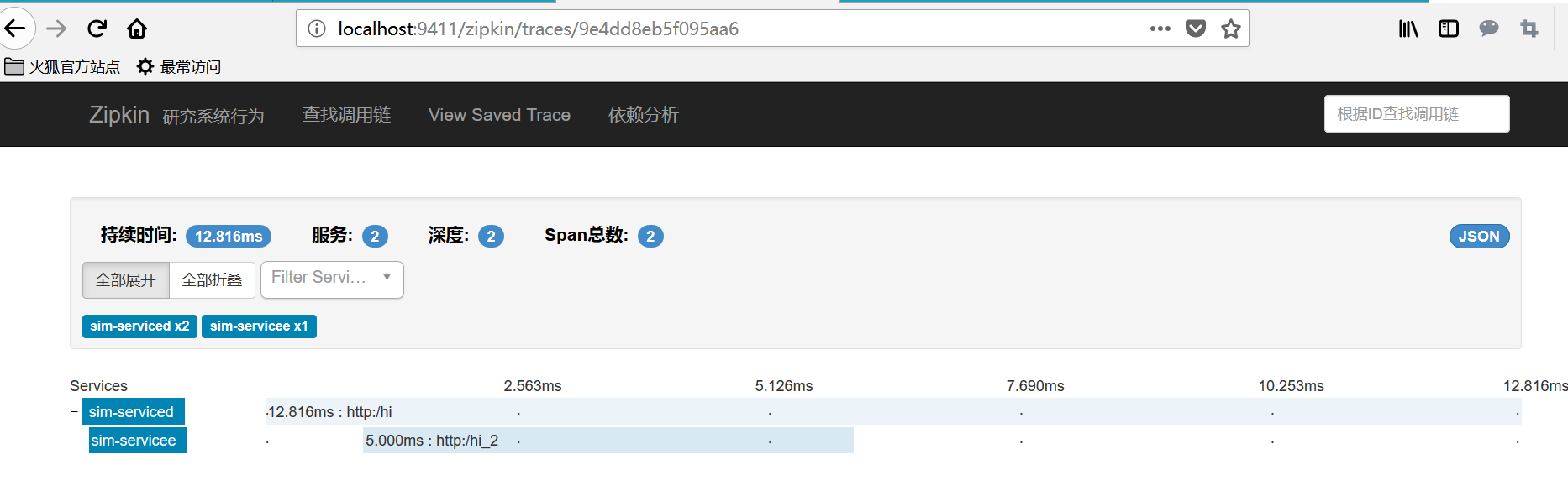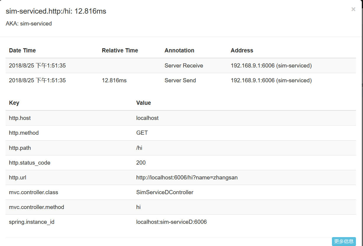 浏览器访问 http://localhost:6006/hi?name=zhangsan ,过一会后刷新 http://localhost:9411链路监控页面。