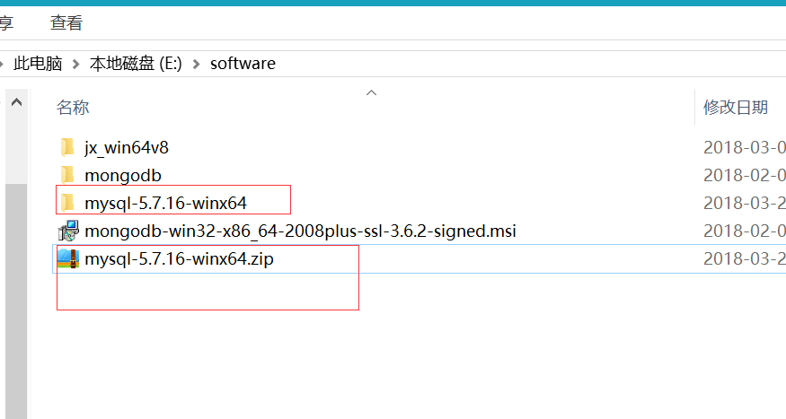 解压mysql-5.7.16-winx64.zip 到当前文件夹,如 :