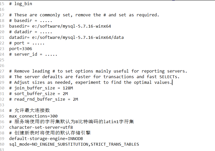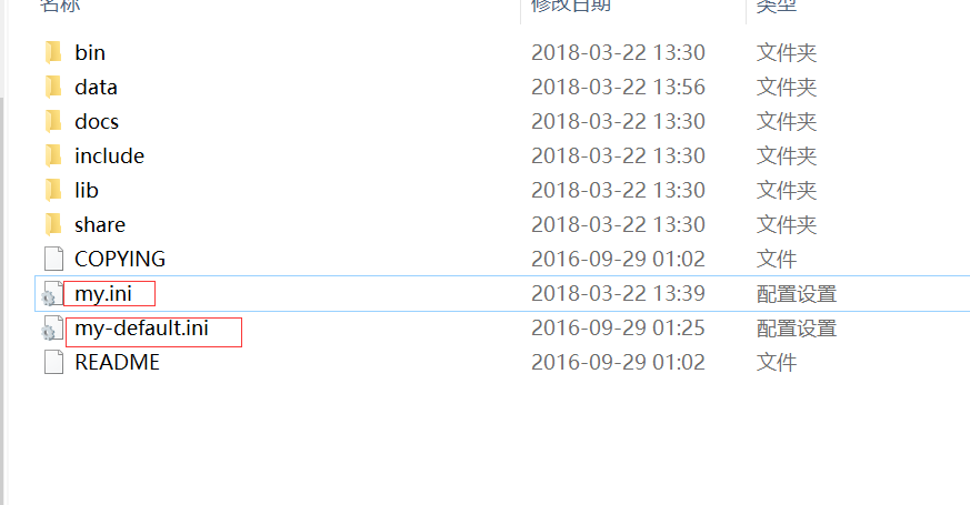 进入 mysql-5.7.16-winx64中,复制 一份my-default.ini, 重命名my.ini ,并修改my.ini中的配置。