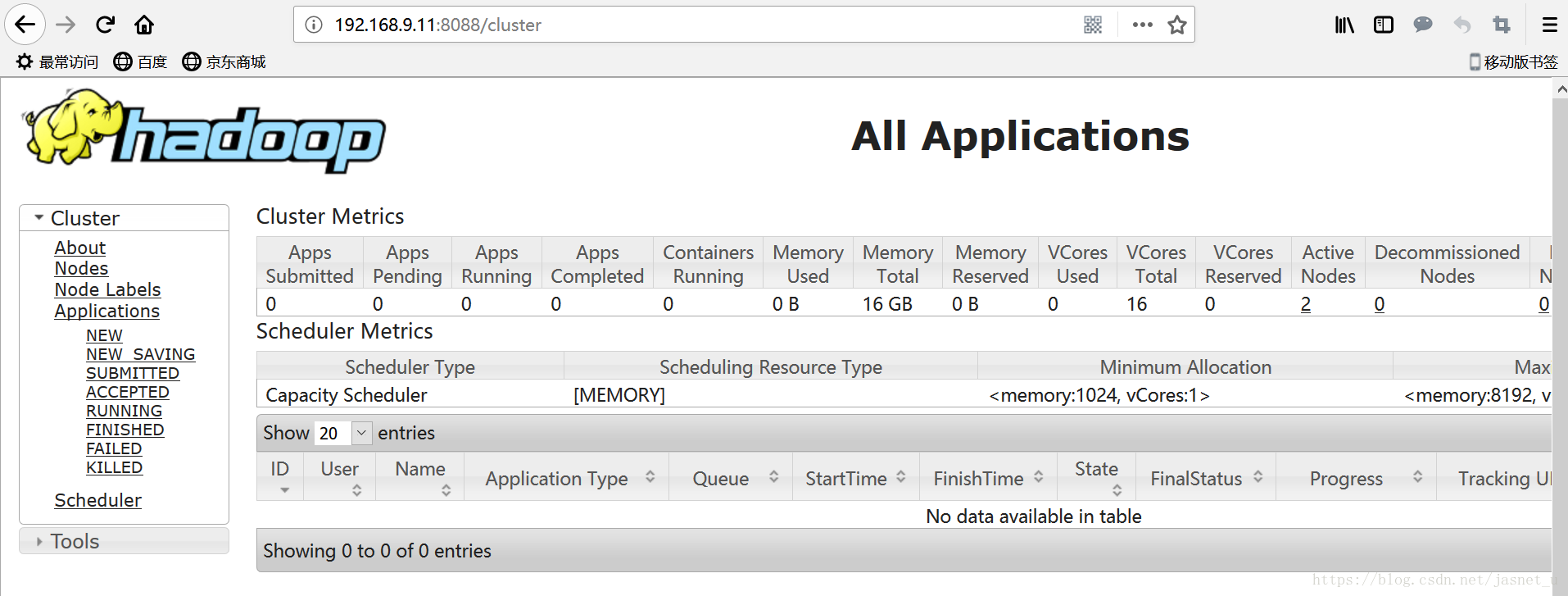 尝试访问 http://192.168.9.11:50070 查看hdfs集群 .