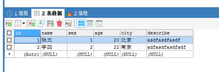 String sql ="INSERT INTO t_user(`name`,sex,age,city,`describe`) VALUES(?,?,?,?,?)";