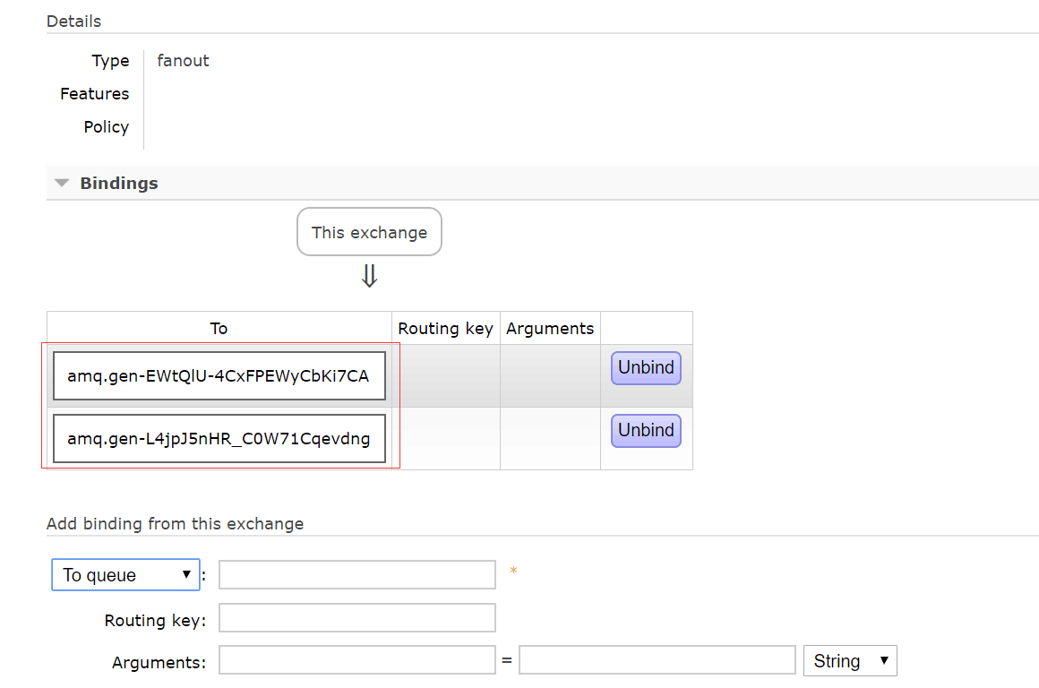 channel.queueBind(queue, EXCHANGE_NAME, "");//客户端绑定的是队列对应的交互机,而不是路由key