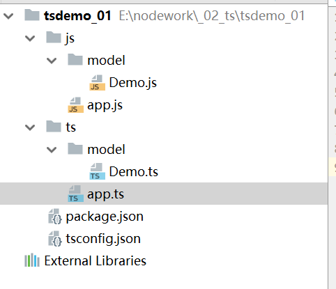 我们在ts目录中新建一个app.ts,作为项目的入口ts。然后再在ts目录中新建一个model目录,用来存放我们的ts模块(ts和es6一样是模块化管理的,ts中使用和es6一样的模块化机制)。
