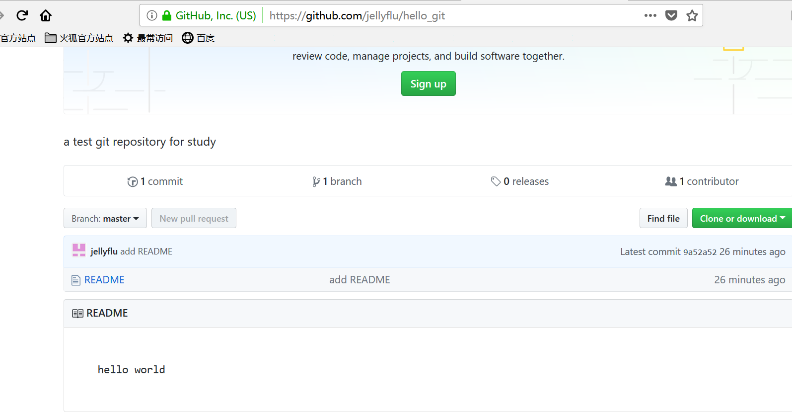 ok,现在我们在浏览器上访问下github上的hello_git项目。